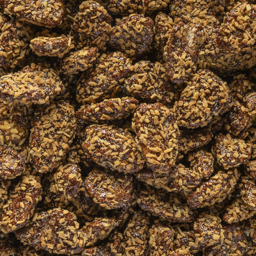 פקאן קלוי מצופה בשבבי עוגיית לוטוס.